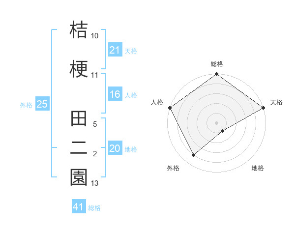 桔梗 田二園さんを姓名の画数から五運を鑑定