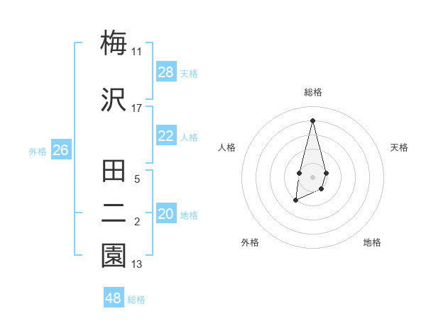 梅沢 田二園さんを姓名の画数から五運を鑑定