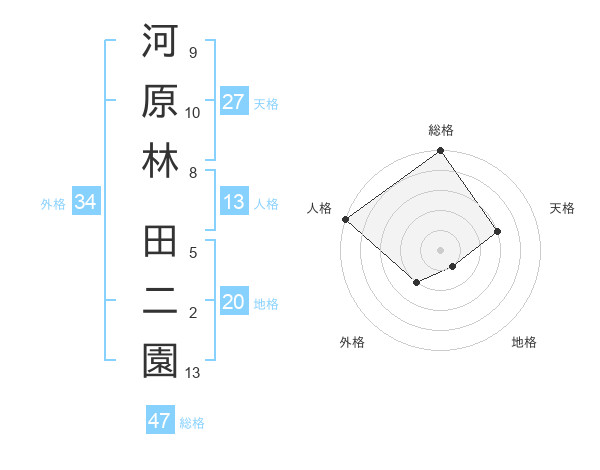河原林 田二園さんを姓名の画数から五運を鑑定
