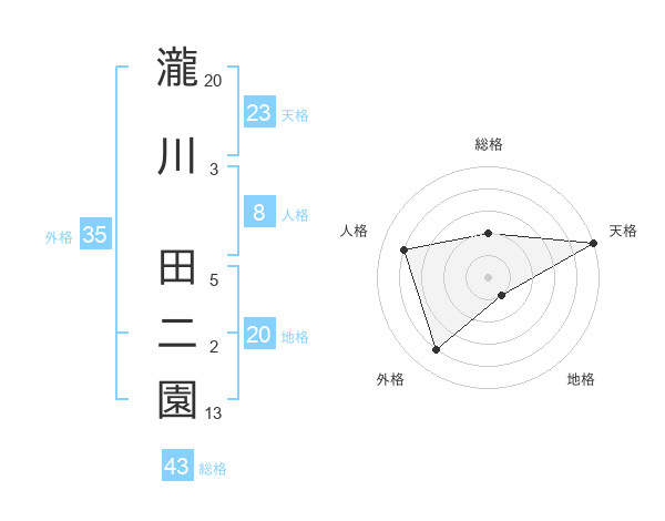 瀧川 田二園さんを姓名の画数から五運を鑑定