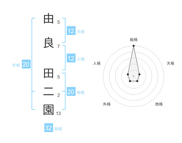 由良 田二園さんの総格は32画の5点!