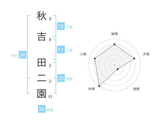 秋吉 田二園さんの外格は24画の5点!