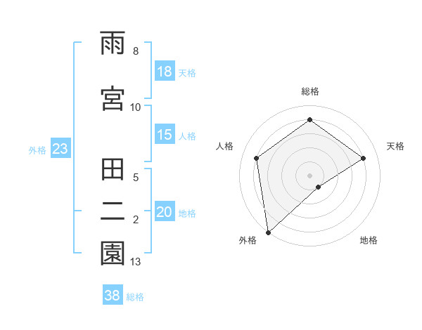 雨宮 田二園さんを姓名の画数から五運を鑑定