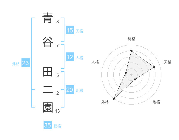 青谷 田二園さんの外格は23画の5点!