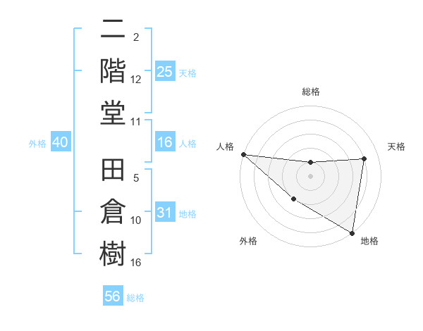 二階堂 田倉樹さんを姓名の画数から五運を鑑定