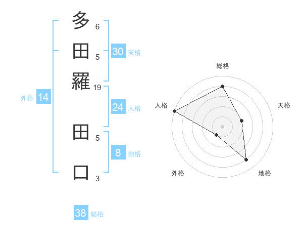 多田羅 田口さんの総格は38画の4点!
