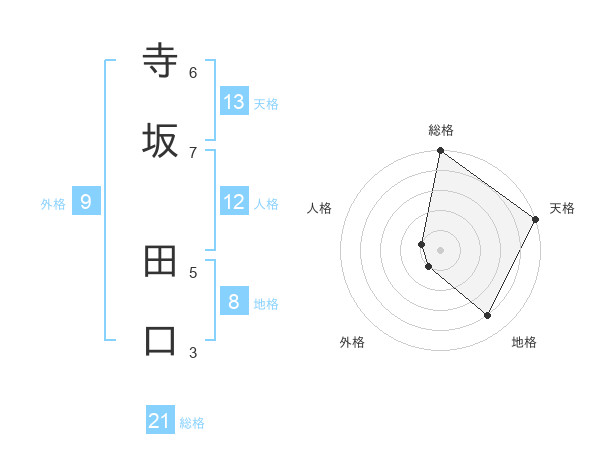 寺坂 田口さんの総格は21画の5点!