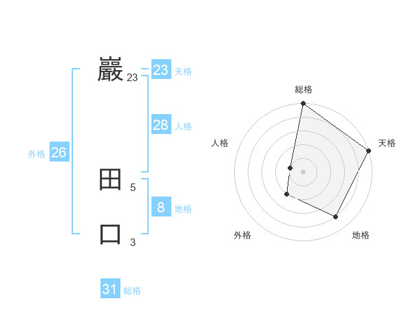 巖 田口さんの天格は23画の5点!