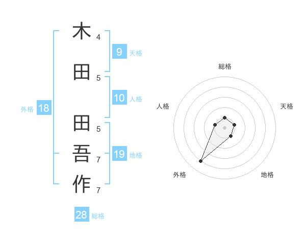 木田 田吾作さんを姓名の画数から五運を鑑定