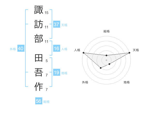 諏訪部 田吾作さんを姓名の画数から五運を鑑定