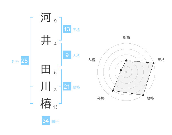河井 田川椿さんを姓名の画数から五運を鑑定