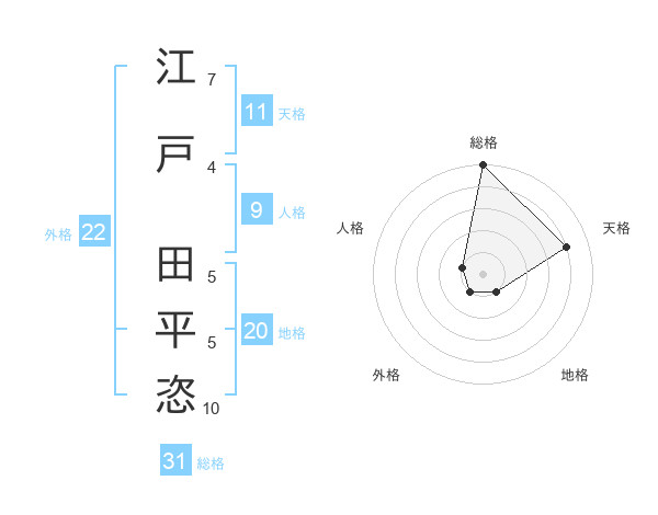 江戸 田平恣さんを姓名の画数から五運を鑑定