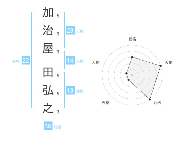 加治屋 田弘之さんの天格は23画の5点