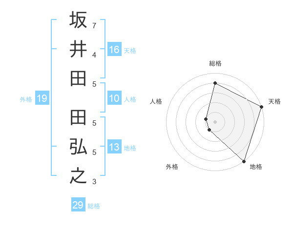 坂井田 田弘之さんを姓名の画数から五運を鑑定