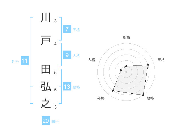 川戸 田弘之さんを姓名の画数から五運を鑑定