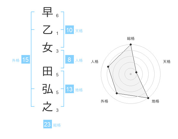 早乙女 田弘之さんの総格は23画の5点!