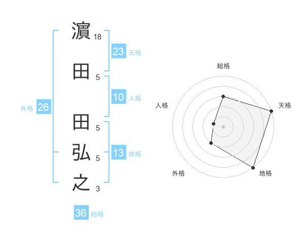 濵田 田弘之さんを姓名の画数から五運を鑑定