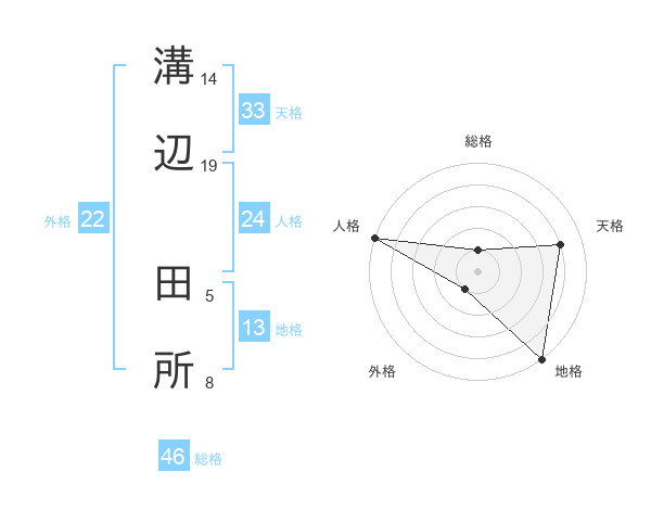 溝辺 田所さんの地格は13画の5点!
