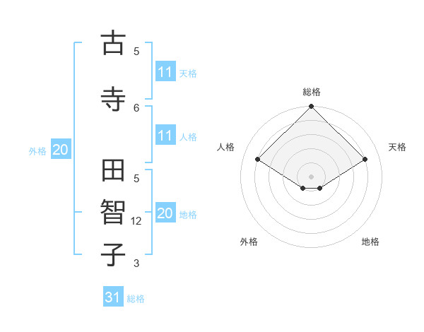 古寺 田智子さんを姓名の画数から五運を鑑定
