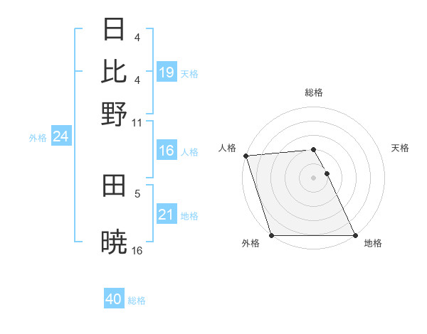 日比野 田暁さんを姓名の画数から五運を鑑定
