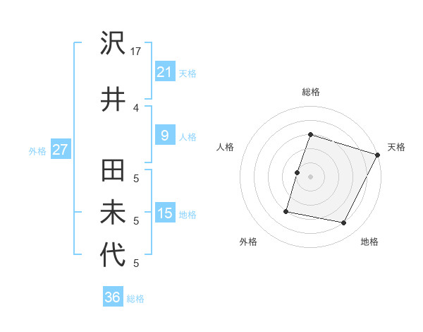 沢井 田未代さんを姓名の画数から五運を鑑定