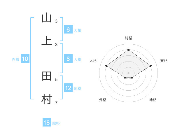 山上 田村さんの総格は18画の4点