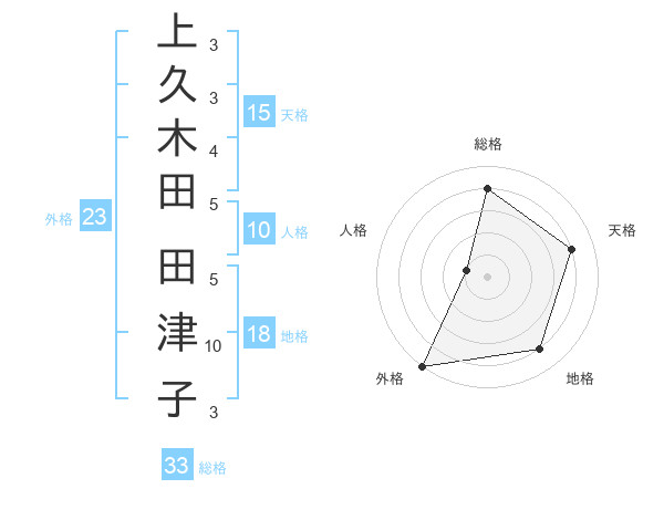 上久木田 田津子さんを姓名の画数から五運を鑑定