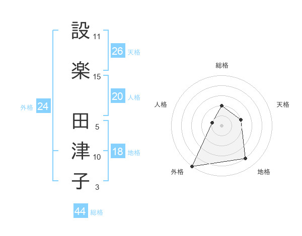 設楽 田津子さんの総格は44画の2点!