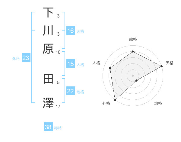 下川原 田澤さんの総格は38画の4点!