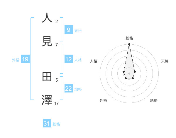 人見 田澤さんの総格は31画の5点!