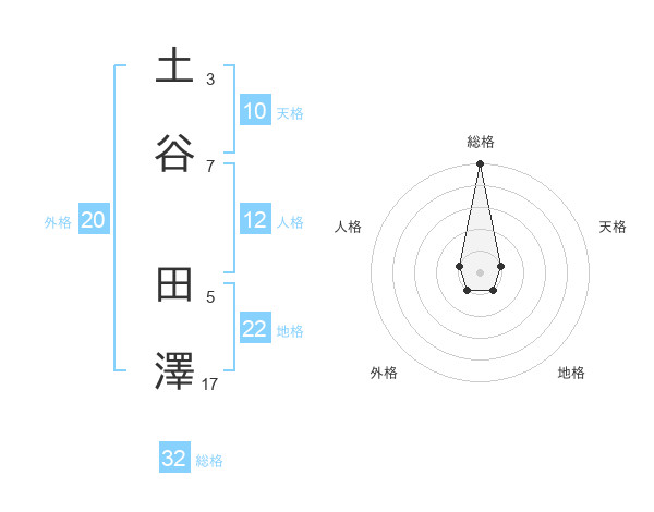 土谷 田澤さんを姓名の画数から五運を鑑定