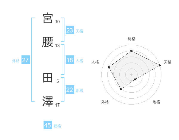 宮腰 田澤さんの総格は45画の4点!