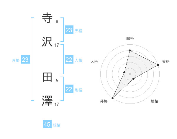 寺沢 田澤さんの天格は23画の5点!