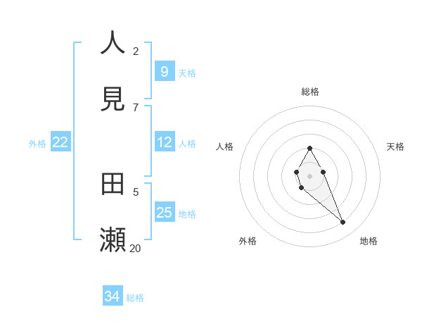 人見 田瀬さんの総格は34画の2点!