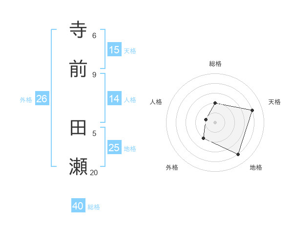 寺前 田瀬さんを姓名の画数から五運を鑑定
