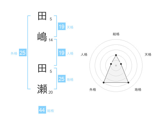 田嶋 田瀬さんの総格は44画の2点!