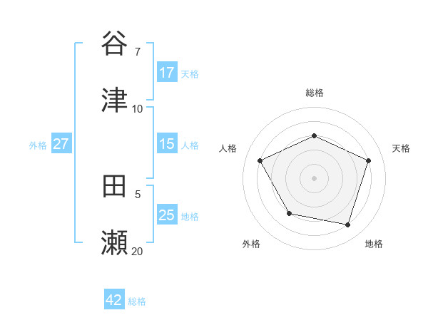 谷津 田瀬さんを姓名の画数から五運を鑑定