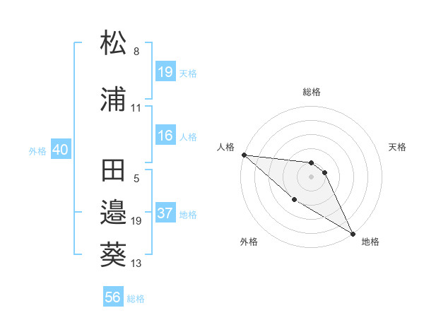 松浦 田邉葵さんの地格は37画の5点