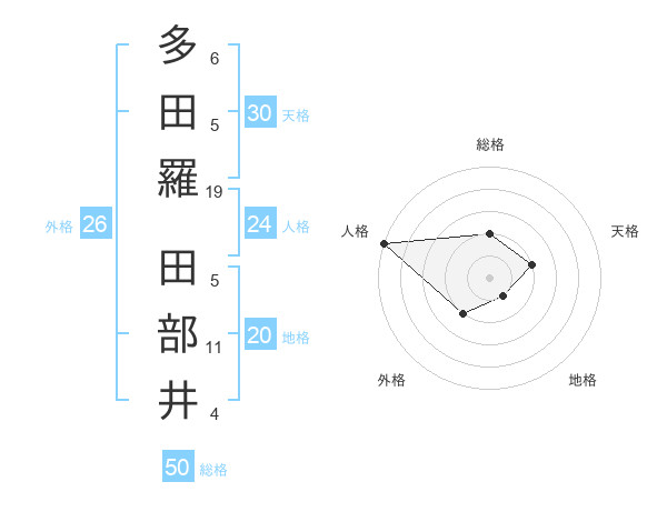 多田羅 田部井さんを姓名の画数から五運を鑑定