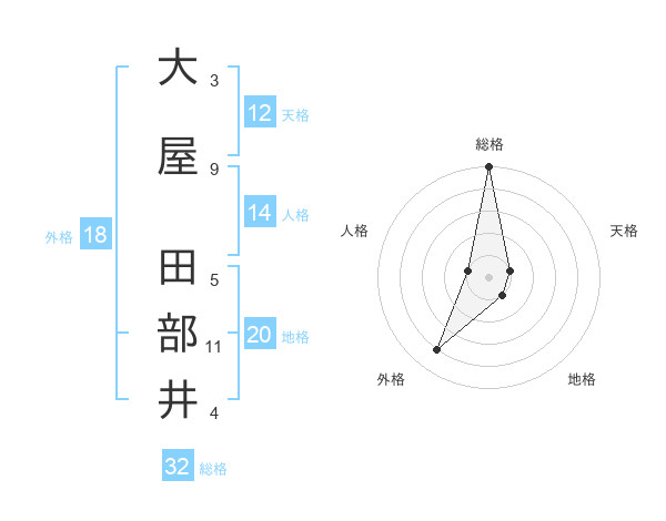 大屋 田部井さんを姓名の画数から五運を鑑定