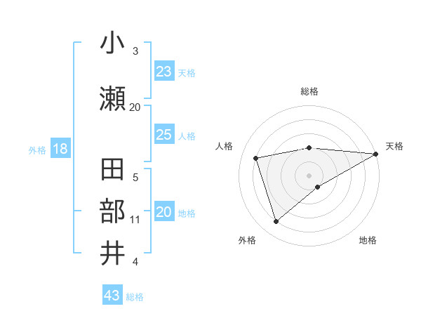 小瀬 田部井さんを姓名の画数から五運を鑑定