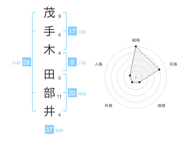 茂手木 田部井さんを姓名の画数から五運を鑑定