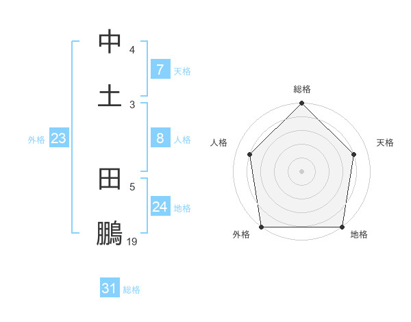 中土 田鵬さんの総格は31画の5点!