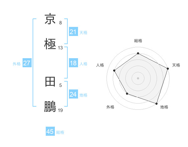 京極 田鵬さんの総格は45画の4点!
