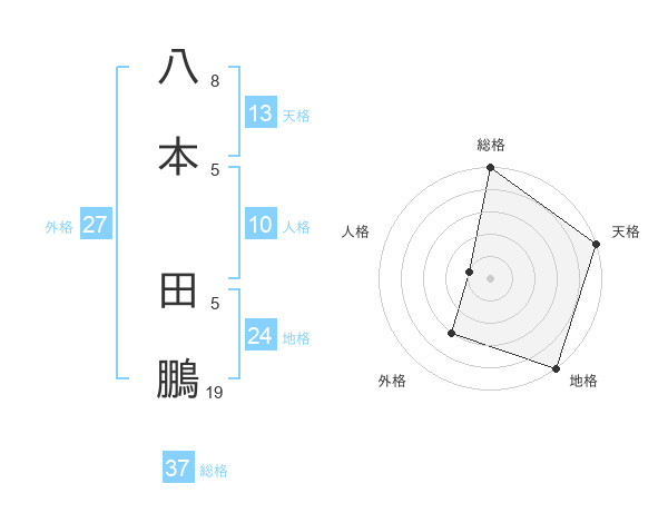 八本 田鵬さんの天格は13画の5点!
