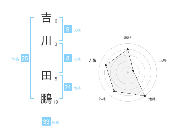 吉川 田鵬さんの地格は24画の5点!
