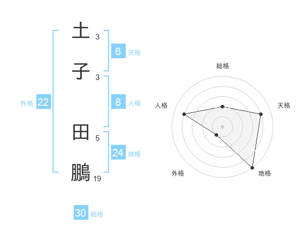 土子 田鵬さんの総格は30画の2点!