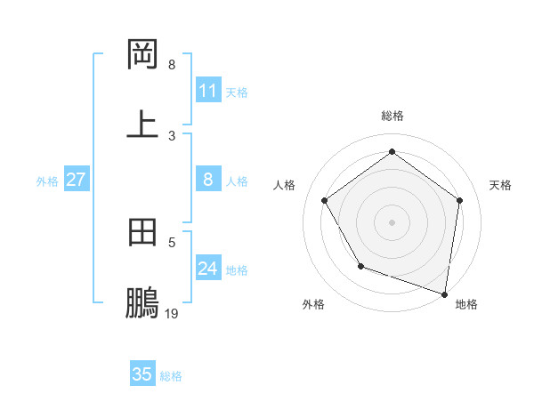 岡上 田鵬さんの地格は24画の5点!