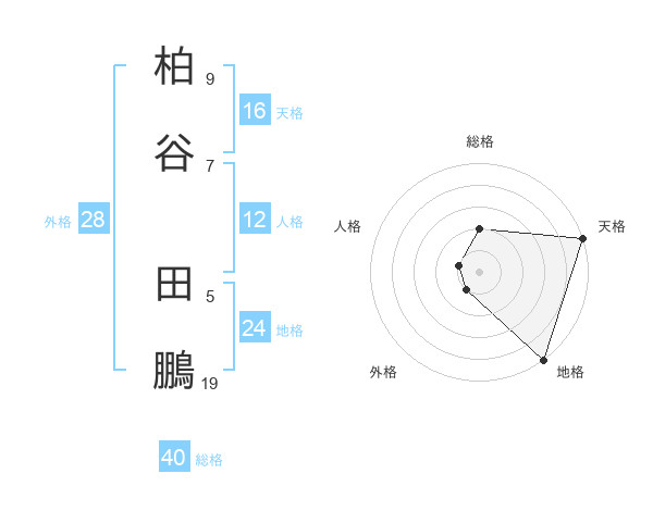 柏谷 田鵬さんを姓名の画数から五運を鑑定
