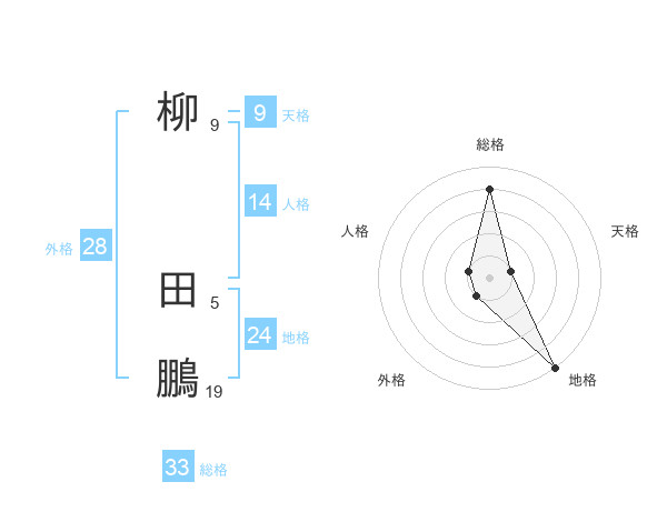 柳 田鵬さんを姓名の画数から五運を鑑定